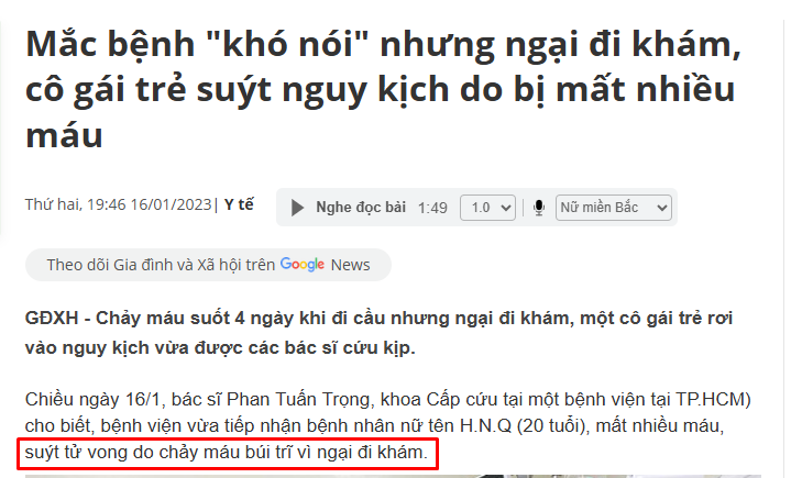 Điều đáng nói ở đây là bệnh nhân hoàn toàn có thể chữa khỏi căn bệnh phổ biến này một cách dễ dàng ngay từ đầu thế nhưng lại vì ” ngại đi khám”, vì chủ quan nên đã gặp phải những biến chứng không ngờ. Vậy thử hỏi chỉ vì ngại mà đánh đổi cả tính mạng thì liệu rằng có đáng không?
